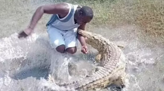 Timsah ona toxunan mühafizəçini dişləyib