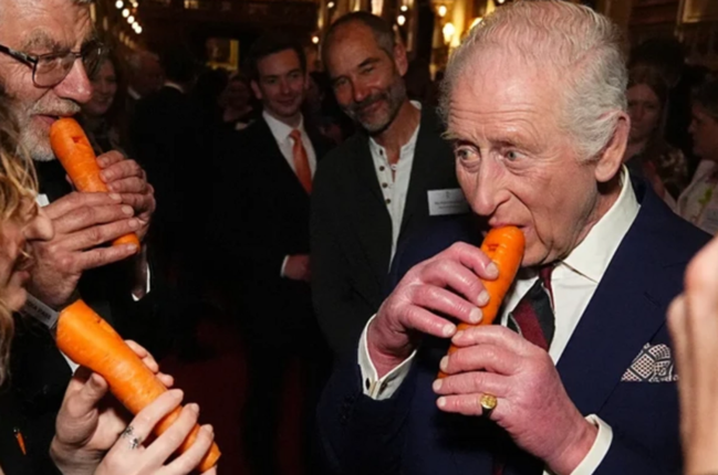 Kral III Çarlz yerkökündən hazırlanan musiqi alətində ifa etdi
