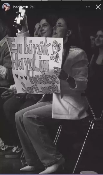 Sonxeber.az türk mediyasına istinadən xəbər verir ki, sonuncu dəfə Almaniyanın Stuttgart şəhərində səhnədə çıxış edən Hadisə konsertdə pərəstişkarının nümayiş etdirdiyi pankarta biganə qala bilməyib. Pankartda "Ən böyük arzum Hadisəni qucaqlamaqdır" yazılıb.