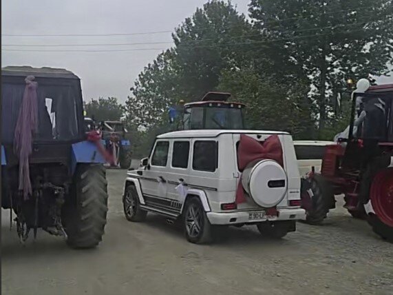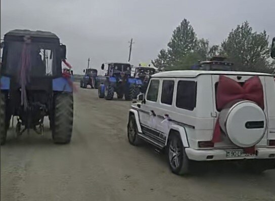 Ağdamda keçirilən toy mərasimi zamanı bəy qız evinə traktor karvanı ilə gedib.