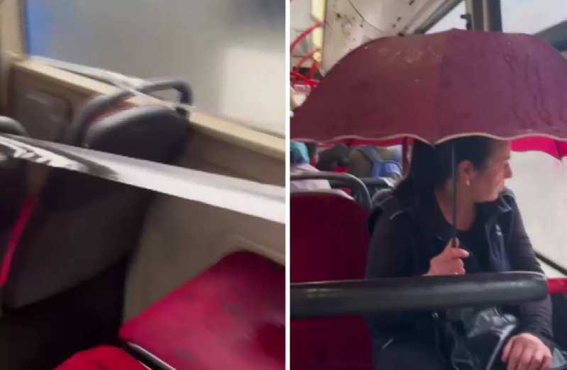 Avtobusun içinə yağış yağdı: Sərnişinlər çətirləri açdı - VİDEO