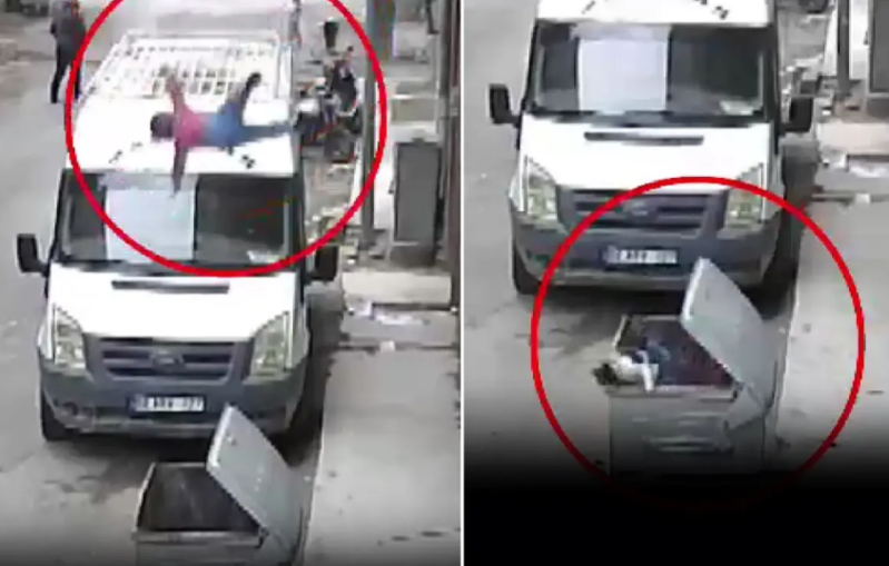 Digər tərəfdən kiçik uşağın evin pəncərəsindən yıxıldığı an təhlükəsizlik kamerasına əks olunub. Kadrlarda uşağın zibil qutusuna düşməsi və zibil qutusunun içindəki pişiyin təşviş içində çölə çıxması anları da öz əksini tapıb.