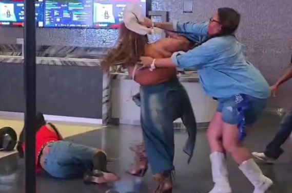 Kovboy mövzulu paltar geyən qadınlar arasında dava bir qadının digərinin kovboy papağını atması ilə başladı və fiziki zorakılığa çevrildi.