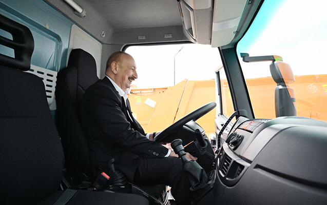 "Qafqazinfo"nun məlumatına görə, dövlət başçısı "IVECO" markalı yük və xüsusi təyinatlı avtomobillərdən birinin sükanı arxasına keçib.