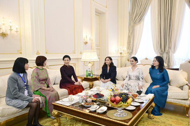 Mayın 7-də Azərbaycanın birinci xanımı Mehriban Əliyevanın Vyetnam Sosialist Respublikası Kommunist Partiyasının Mərkəzi Komitəsinin Baş katibinin xanımı No Fon Li ilə görüşü olub.