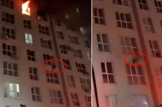 Yanğın zamanı təşvişə düşən qadın özünü 8-ci mərtəbədən atdı - VİDEO
