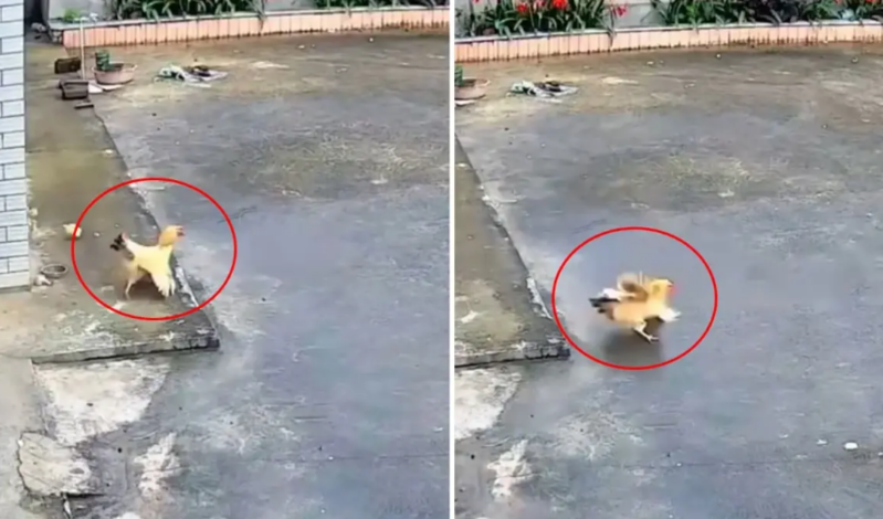 Bağçaya qəfil daxil olan şahin cücələri hədəf alarkən, ana toyuq canını təhlükəyə ataraq balalarını qorumağa çalışıb.