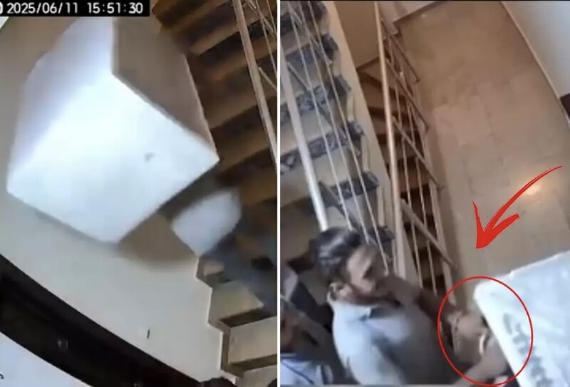 Quraşdırma başa çatdıqdan sonra binanı tərk etməyə hazırlaşan işçilərdən biri, mənzilin qapısı qarşısında olan bir cüt ev ayaqqabısını "xoşuma gəldi" deyərək götürüb və onu həmkarının əlində tutduğu zibil torbasının içinə yerləşdirib. Daha sonra isə heç nə olmamış kimi binadan uzaqlaşıblar.