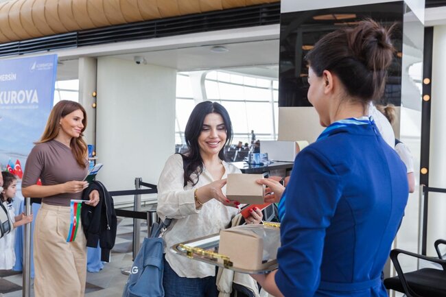 Uçuşdan əvvəl Heydər Əliyev Beynəlxalq Aeroportunun 1-ci Terminalında sərnişinlər üçün təntənəli tədbir təşkil olunub. Təyyarə Çukurova Beynəlxalq Hava Limanında da səmimi şəkildə qarşılanıb, sərnişinlərə şirniyyatlar təqdim edilib.
