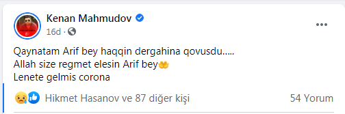 Rejissor və aktyor Kənan M.M (Kənan Mahmudov) ağır itki üz baş verib.