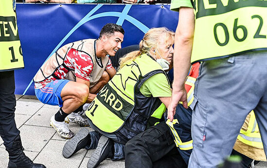 Ronaldonun zərbəsi qadın işçiyə xəsarət yetirdi - FOTOLAR