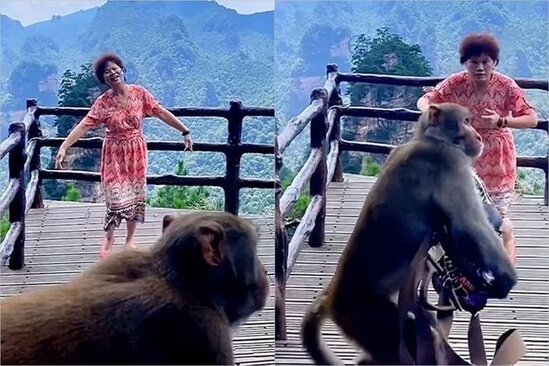 Çində milli parkların birində gülməli hadisə baş verib. Belə ki, qadının təbiət fonunda rəqs etmək həvəsi onun meymun tərəfindən qarət olunması ilə nəticələnib.