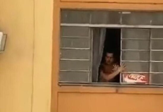 Kadrlarda 35 yaşlı Mariya Xose sol ayağını pəncərənin üstünə qoyub. Ancaq hamilə olduğu bildirilən qadının 32 yaşlı həyat yoldaşı Vitor Batista başından tutaraq onu mənzilə geri çəkdiyi açıq-aydın görünür.
