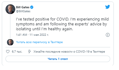 Qeyts, COVİD testinin müsbət olduğunu bildirib:
