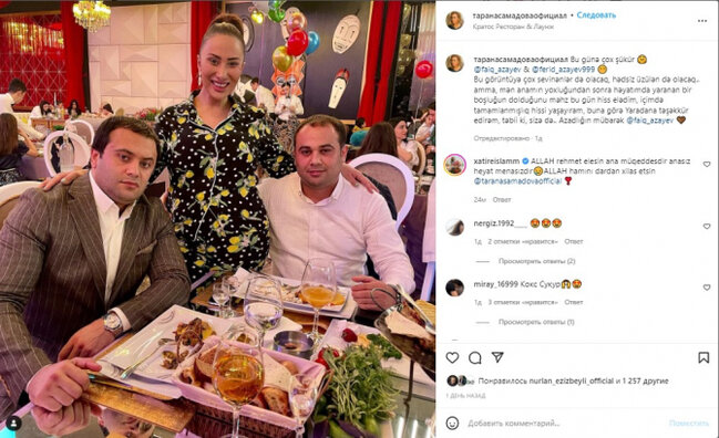 "Bu günə çox şükür. Faiq Azayev, Fərid Azayev... Bu görüntüyə çox sevinənlər də olacaq, hədsiz üzülən də olacaq, amma, mən anamın yoxluğundan sonra həyatımda yaranan bir boşluğun dolduğunu məhz bu gün hiss elədim, içimdə tamamlanmışlıq hissi yaşayıram, buna görə Yaradana təşəkkür edirəm, təbii ki, sizə də... Azadlığın mübarək, Faiq Azayev".