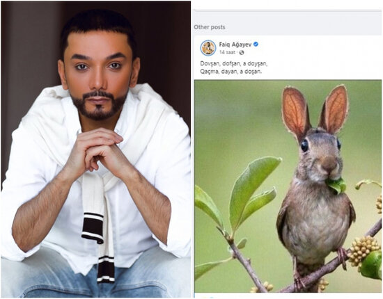BAKU.WS xəbər verir ki, Xalq artisti Faiq Ağayev bununla bağlı sosial şəbəkə hesabında boz dovşan fotosu paylaşıb. Sənətçi paylaşıma "Dovşan, dofşan, a doyşan, Qaçma, dayan, a doşan" sözlərini yazaraq İnstitutun əməkdaşlarının bu addımına ironiyalı münasibət bildirib.