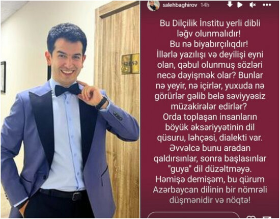 Dovşan sözünün fərqli tələffüzünə etiraz edənlər arasında aparıcı Saleh Bağırov da var. O, instaqram hesabında Dilçilik İnstitutunun əməkdaşlarının bu addımına qəti şəkildə etiraz edib: