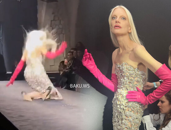 BAKU.WS xarici KİV-ə istinadən xəbər verir ki, Paris Moda Həftəsində podiuma çıxan modelin ayağı büdrəyib və yıxılıb.