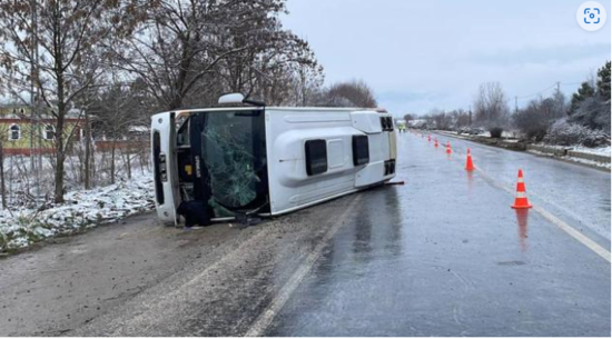 Türkiyənin İstanbul şəhərində dəfn mərasiminə insanları daşıyan avtobusun aşıb.