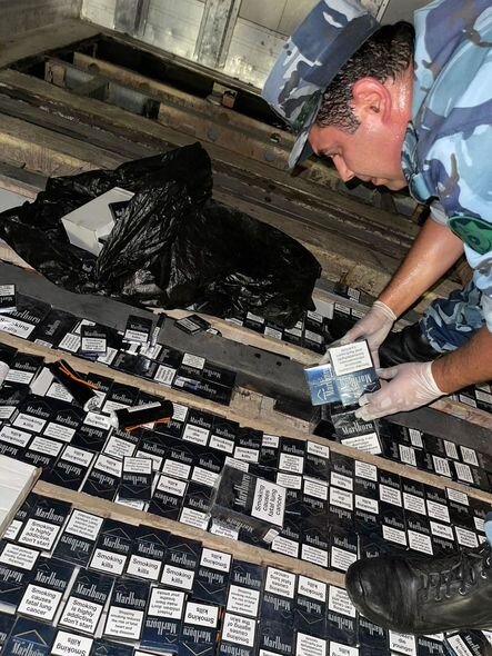 Nəticədə nəqliyyat vasitəsinin qoşqusunun döşəməsi sökülərkən əvvəlcədən quraşdırılan gizli saxlanc yerindən gömrük orqanına bəyan edilməyən, gömrük nəzarətindən gizlədilən 8 adda 282 200 ədəd siqaretlər, 4 320 ədəd pirotexniki vasitə aşkar edilib.