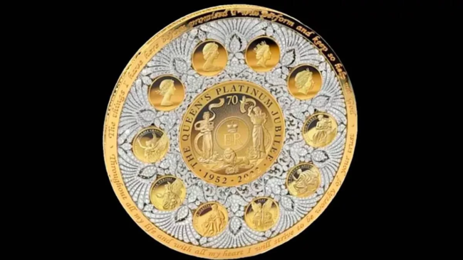 BiG.AZ xarici mənbəyə istinadən xəbər verir ki, Kraliçanın ölüm ildönümündən əvvəl təqdim edilən sikkə 3,6 kiloqram 24 karatlıq qızıl və 6426 ədəd brilyantdan hazırlanıb. Dizaynına kraliçanın ölümündən əvvəl başlanılan sikkənin istehsalı ilə kral ailəsinin müvafiq qurumlarının da məşğul olduğu bildirilir.
