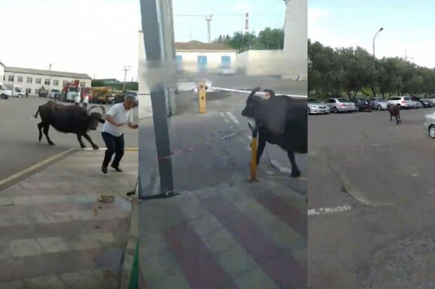 Bildirilir ki, qəzəbli camış artıq bir neçə maşına ziyan vurub. Həmçinin o, yoldakı insanların üzərinə də hücum çəkib, həyətlərə girib.