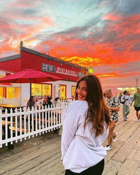 Suada paylaşımına "Odlu gün batımı, ərimiş ürəklər. Çiskin, qara buludların arxasında gizlənməyə çalışan günəş altında Malibu çimərliyi... Burada gün batımını seyr etmək və dəniz məhsullarının dadına baxmaq... Sevgi havadadır" sözlərini yazıb.