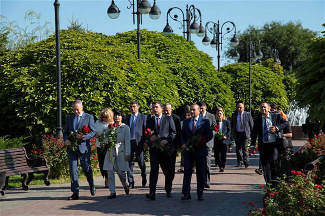 Səfər çərçivəsində nümayəndə heyəti Ümummilli Lider Heydər Əliyevin adını daşıyan parkda Ulu Öndərin abidəsini, həmçinin Qardaşlıq bağında "Əbədi Şöhrət Məşəli" abidəsini ziyarət edərək önlərinə gül dəstələri düzüb.