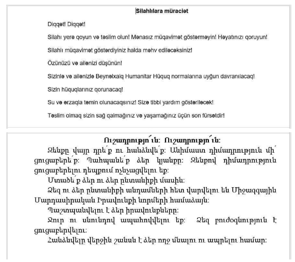 Antiterror tədbirləri ilə bağlı Azərbaycan Ordusu Qarabağın erməni sakinləri ilə yanaşı silahlılara da müraciət ünvanlayıb.