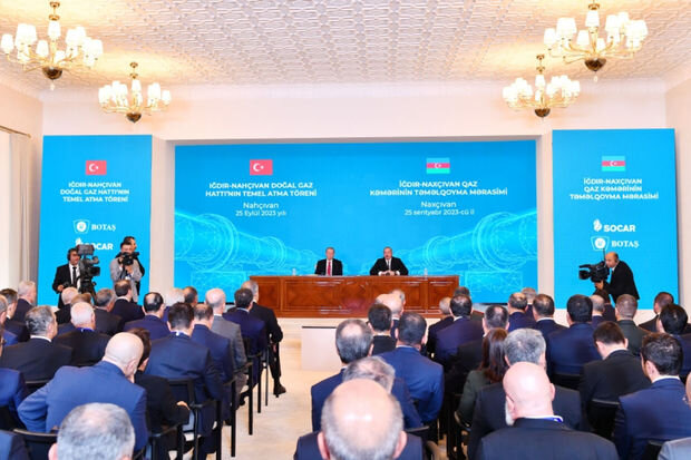 "Vaxtilə biz Sizinlə (Ərdoğan – red.) TANAP layihəsinin təməlini qoymuşduq, TANAP boru xəttinin açılışını bərabər etmişdik. Bu gün isə Türkiyədən Azərbaycanın parçası olan Naxçıvana qaz kəmərinin inşası ilə bağlı işlərə start veririk".