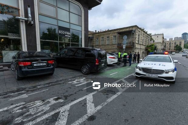 Bakının mərkəzində, Mirzəağa Əliyev küçəsində yerləşən restoranın qarşısı avtomobillər tərəfindən zəbt olunub.