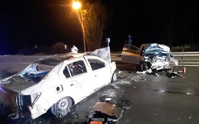 Olayda hər iki avtomobil yanıb. Sürücülər hadisə yerində keçiniblər.