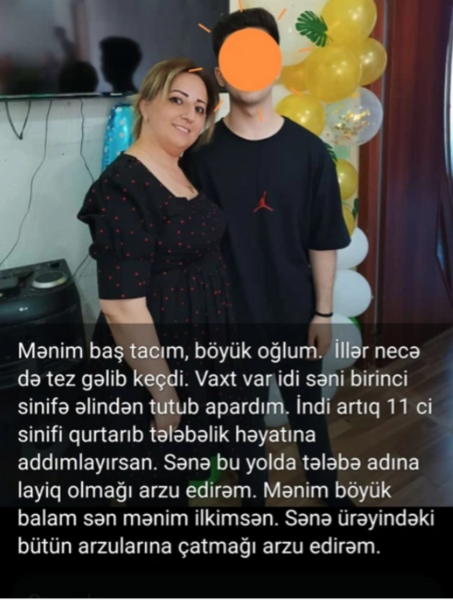 "Bu günü çox səbirsizliklə və həsrətlə gözləyirdi. Gecə saat 3-ə işləmiş oğlu haqqında "WhatsApp"da paylaşım edib, ürək sözlərini yazıb. Bəlkə də səhər oğlunun "Məzun günü"ndə iştirak edə bilməyəcəyini ana ürəyi hiss edibmiş".