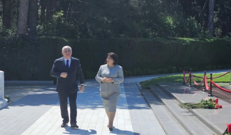 Əli Əsədov və Sahibə Qafarova ulu öndər Heydər Əliyevin Fəxri xiyabandakı məzarını ziyarət ediblər