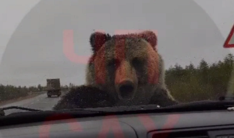 Rusiyanın Saxalin vilayətinin Oxinski rayonunda ayı yola çıxaraq insanların olduğu avtomobilə hücum edib.