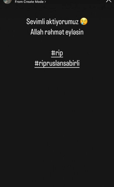 "Sevimli aktyorumuz, Allah rəhmət eləsin. Ruslan Sabirli" deyə, sənətçinin İnstaqram hesabının hekayə bölümündə yazılıb.
