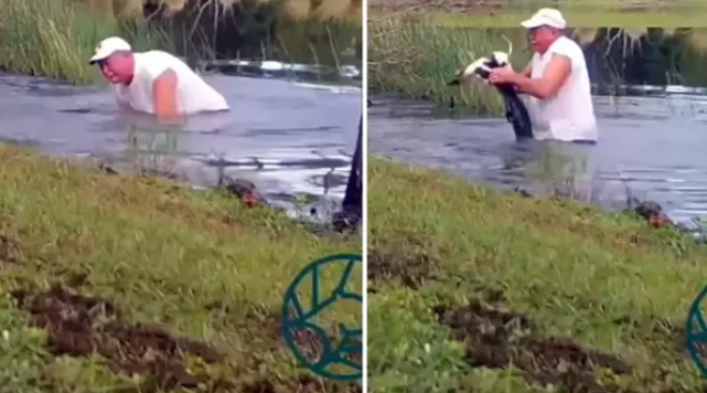 74 yaşlı kişi itini timsahın ağzından xilas etdi - VİDEO