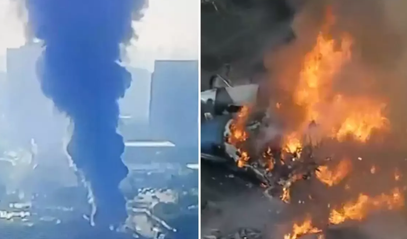 Təyyarə avtomobillərin üzərinə düşdü - VİDEO
