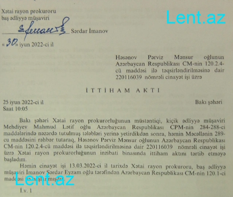 Sonxeber.az xəbər verir ki, lent.az qətl hadisəsinin istintaq materiallarını əldə edib.
