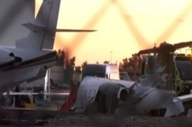 Texas ştatının Ostin şəhərindən gələn "Learjet 35A" təyyarəsinin enişdən qısa müddət sonra şassisi sıradan çıxdığı bildirilir. Nəticədə 8 nəfərlik təyyarə idarəetməni itirərək park edilmiş "Gulfstream 200" biznes-jetinə çırpılıb.