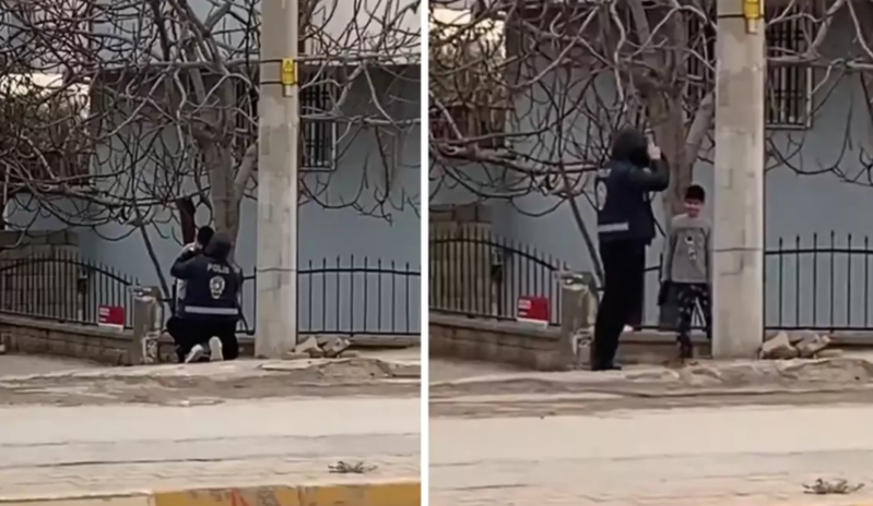 Sonxeber.az türk mediyasına istinadən xəbər verir ki, balaca uşaq soyuq havada növbətçi polis əməkdaşının üşüdüyünü görüb, evə qaçaraq ona papaq və əlcək gətirib.