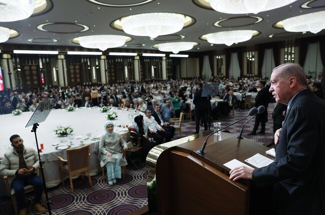 Türkiyə lideri Beştepe Millet Sergi Salonunda təşkil edilən iftar zamanı çıxış edib və qəzzalılara dəstəyini bir daha vurğulayıb.