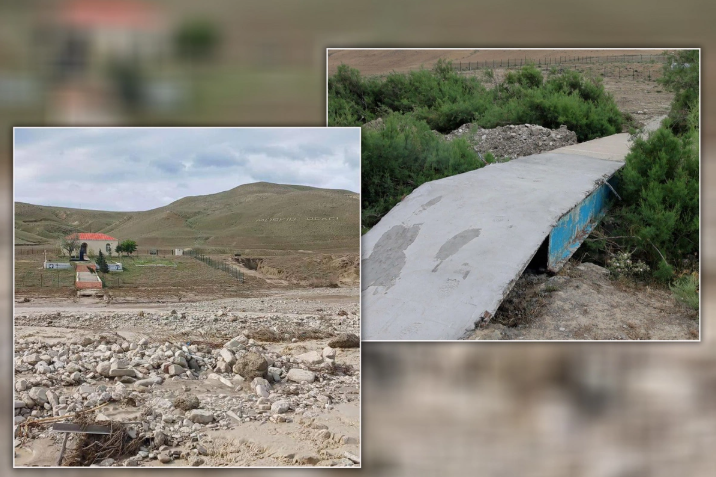 Xızı rayonunda yerləşən Mikayıl Müşfiqin ev muzeyinə aparan yeganə körpünü güclü sel suları aparıb.