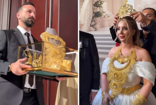 Aleyna Dalverenin toyunda taxdığı qızıl-zinət əşyaları diqqət çəkib. Bəyin şüşə qabda milyon dollarlıq qızıl dəstləri ilə gəlişi hər kəsi heyrətə gətirib. Tac, kəmər, boyunbağı və qolbağı taxan fenomen qızılları daşımaqda çətinlik çəkib.