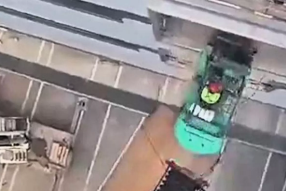 Görüntülərdə dəbilqə və flüoresan jilet taxan işçinin kranla havada asılmış platformada yaşıl forklift idarə etdiyi görünür. İşçi forkliftlə binaya girmək istəyərkən, maşının qabağı binanın kənarına çırpılıb, platforma qəfil silkələnib binadan uzaqlaşıb.