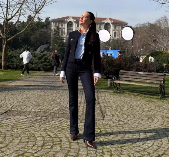 Reklam çəkilişləri üçün Boğaziçi Universitetinin tarixi əsas binası və həyətinə gedən 38 yaşlı aktrisa, çəkiliş arasında universitetin yaşıllıqları içində kamera qarşısına keçib. Tələbəlik illərindən izlər daşıyan məkanda çəkilən fotolarına "Köhnə yuvamda bir set xatirəsi" qeydi yazan Evcen, həm keçmişə olan həsrətini, həm də yeni layihəsini eyni kadrda birləşdirib.