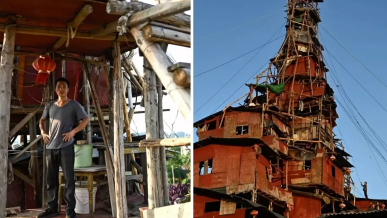 Çinin cənub-qərbində yaşayan 42 yaşlı Chen Tianming yerli hakimiyyət orqanlarının qərarlarına qarşı çıxaraq evinin üzərinə tam 10 mərtəbəli, piramida formasında nəhəng bir tikili inşa edib.