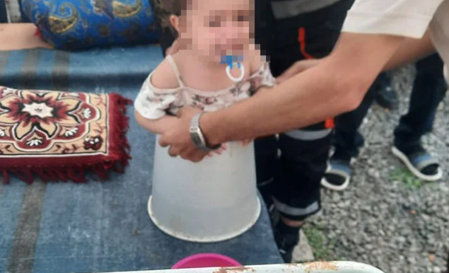 Arzu İsmayılova (ad şərtidir) həyətdə oynayarkən içinə girdiyi dəmir vedrədə sıxılı qalıb.
