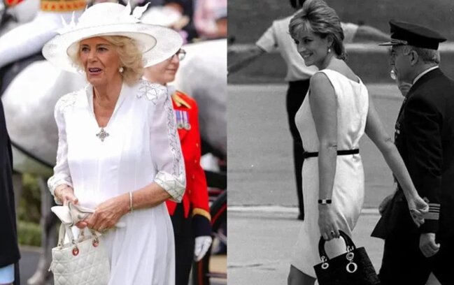 Axşam.az xəbər verir ki, o, görünüşünü mərhum kraliça II Elizavetaya məxsus "Raspberry Pip" broşu və Filip Treysiyə məxsus tüklü şlyapa ilə tamamlayıb. Amma ictimaiyyətin diqqətini çəkən əsas aksesuar — Kamillanın əlində tutduğu açıq rəngli "Lady Dior" çantası olub.
