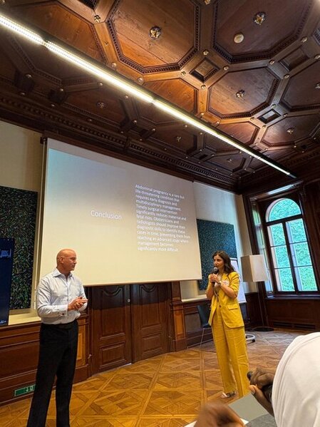 Azərbaycanlı mütəxəssis Aygün Məmmədovanın təqdimatı iştirakçılar və ekspert heyəti tərəfindən peşəkar yanaşması, elmi əsaslara söykənməsi və təqdimat bacarığı ilə seçilərək seminarda ən yüksək qiymət alıb. "Abdominal hamiləlik" kimi nadir rast gəlinən bir halın ətraflı klinik analizi, diaqnostika çətinlikləri və müalicə yanaşmaları seminar iştirakçılarının marağına səbəb olub.